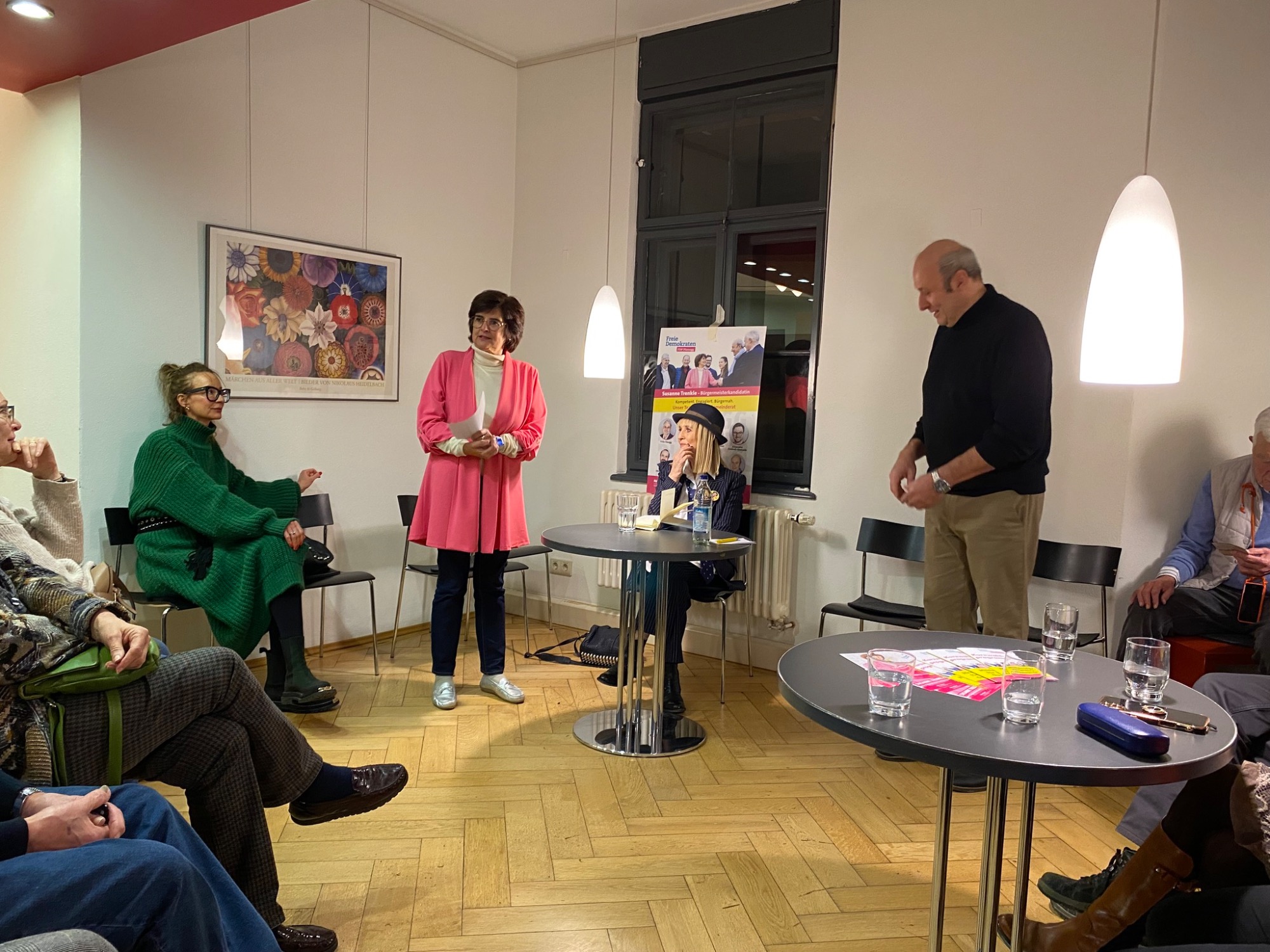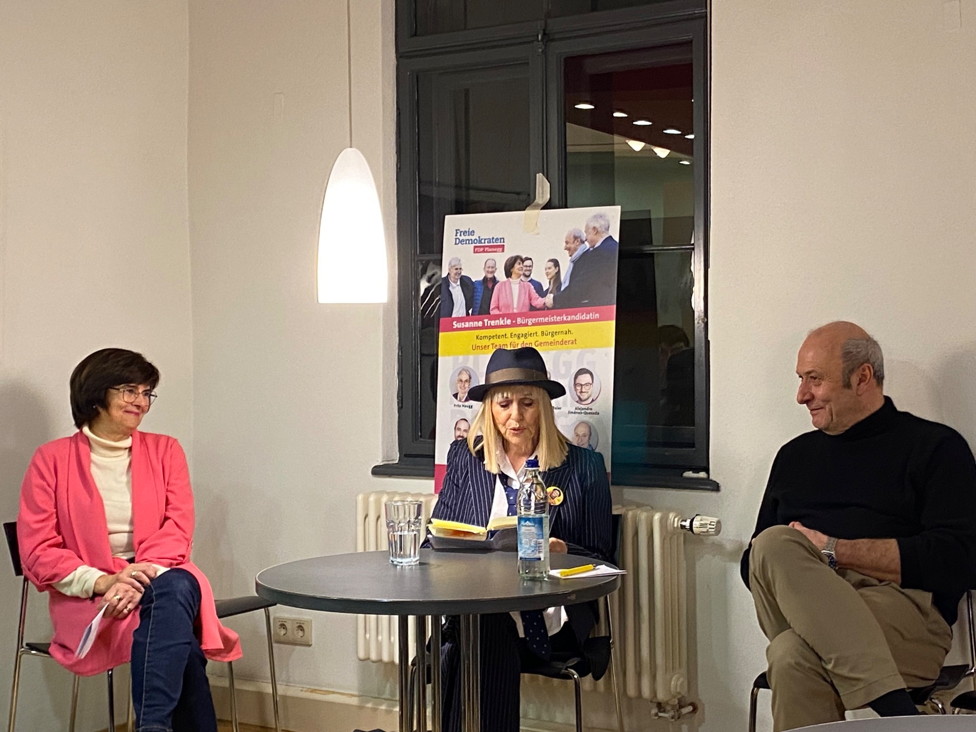 Die liberale Bürgermeisterkandidatin Susanne Trenkle, die die Veranstaltung moderierte, meinte das Lesecafé eignet sich gut als Veranstaltungsort, nur muss es von der Gemeindeverwaltung dafür ertüchtigt werden. Sie kann sich auch vorstellen, dass das Café dauerhaft als solches geführt wird, z.B. auch mit Hilfe von Ehrenamtlichen.