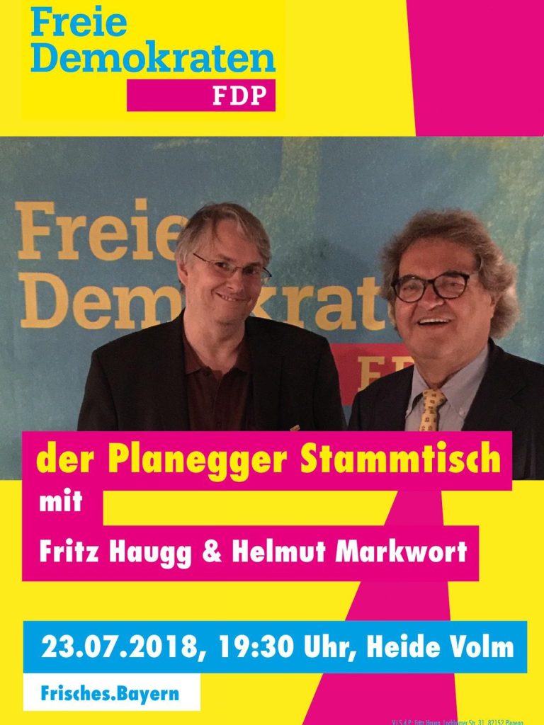 Der Vorstand der FDP Planegg setzt sich wie folgt zusammen. Vorsitzender Fritz Haugg, Stellv. Vorsitzender Winfried Ferstl, Schatzmeisterin Jutta Haindl und Beisitzer Dr. Christian Haugg.