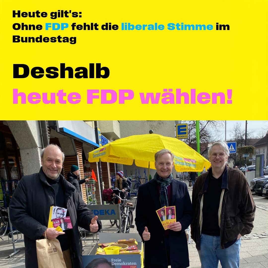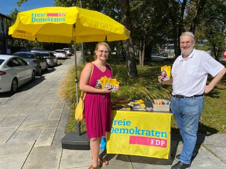 Die FDP Planegg hat mit 15% ein sehr gutes Ergebnis in Planegg eingefahren. Am Marktplatz Kamm es zur Begnung dreier Bundestagskandidataten, (Fritz Haugg, Bela Bach und Jimmy Schulz), zweier Planegger Gemeinderäte (Fritz Haugg und Bela Bach), so wie zweier Kreisräte (Bela Bach und Jimmy Schulz). So kann Wahlkampf auch Spaß machen.