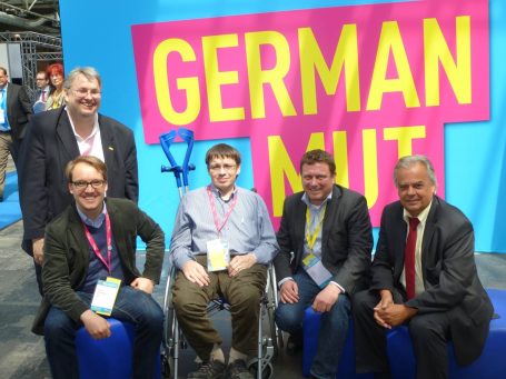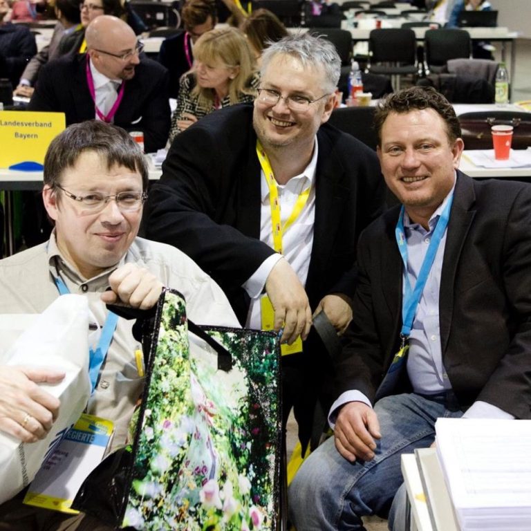 Der Parteitag stand unter dem Motto: Beta Republik Deutschland, weil er sich mit dem Thema der „digitalen Gesellschaft“ auseinandersetzen. Foto links, die Delegierten aus München-Land: Wolfgang Mathis, Fritz Haugg und Jimmy Schulz.